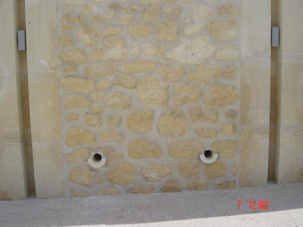Les dalles en pierre, marbre ou granit sont fixées par une cheville en zamac fixée sur le mur-support et un fil de zintane enrobé par un polochon de mortier (système Etanco). La mise en oeuvre du système requiert un savoir-faire maîtrisé par Ominero.